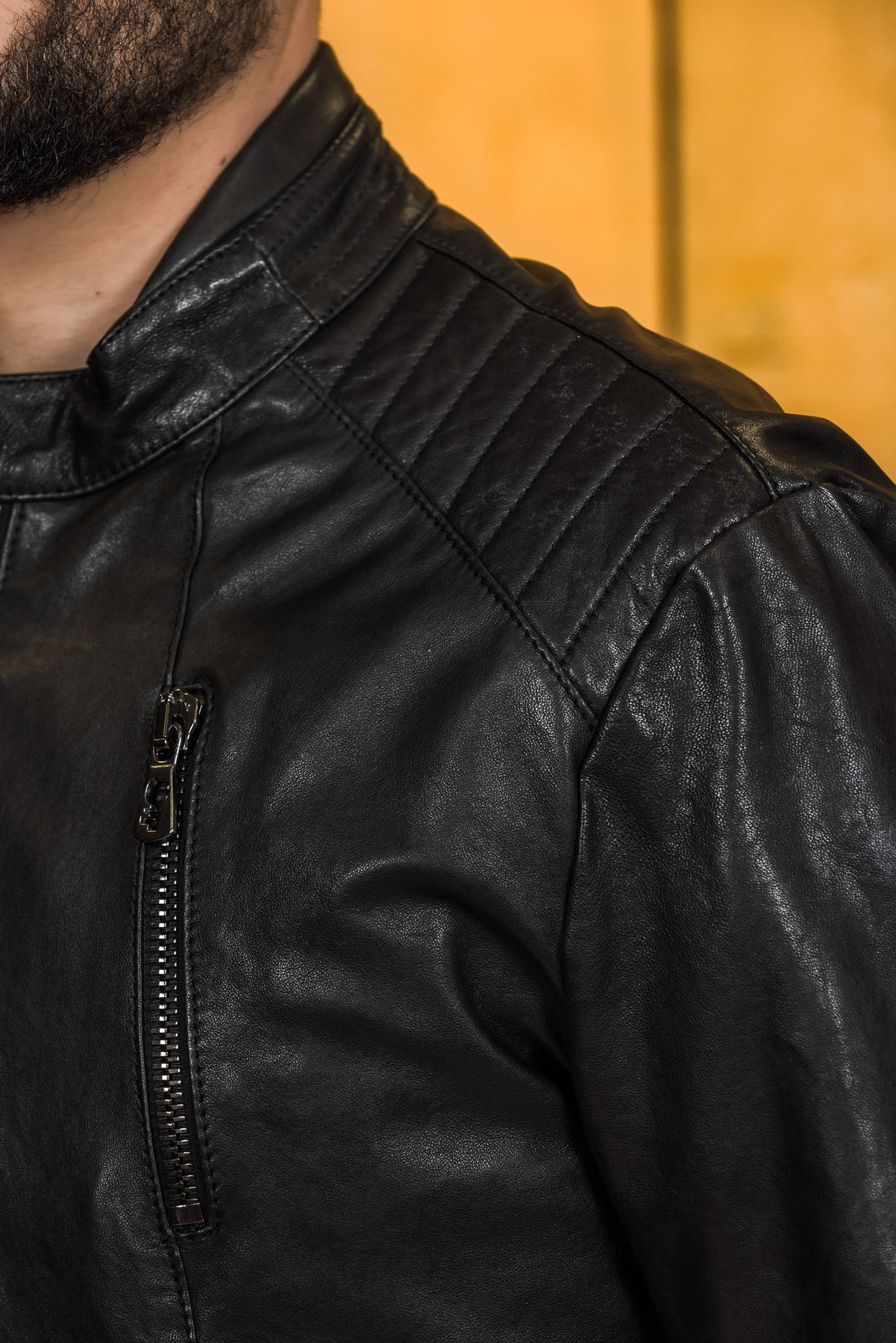 Driss: premium leather jacket guaranteed to make a statement. Crafted with high-quality leather and designed with a modern aesthetic, this classic black jacket is perfect for any style-conscious individual. Get yours today and stand out from the crowd.