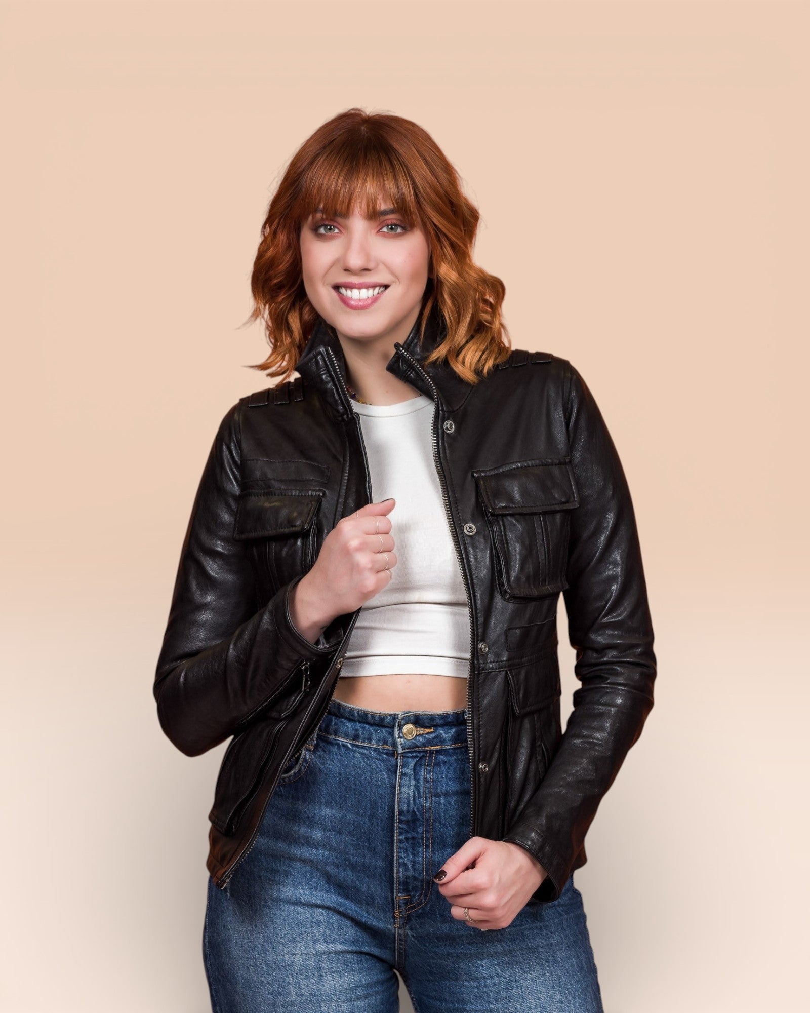 Choose the ILARY Jacket and wear the excellence of lambskin leather, a style investment that will accompany you with class and distinction at all times.