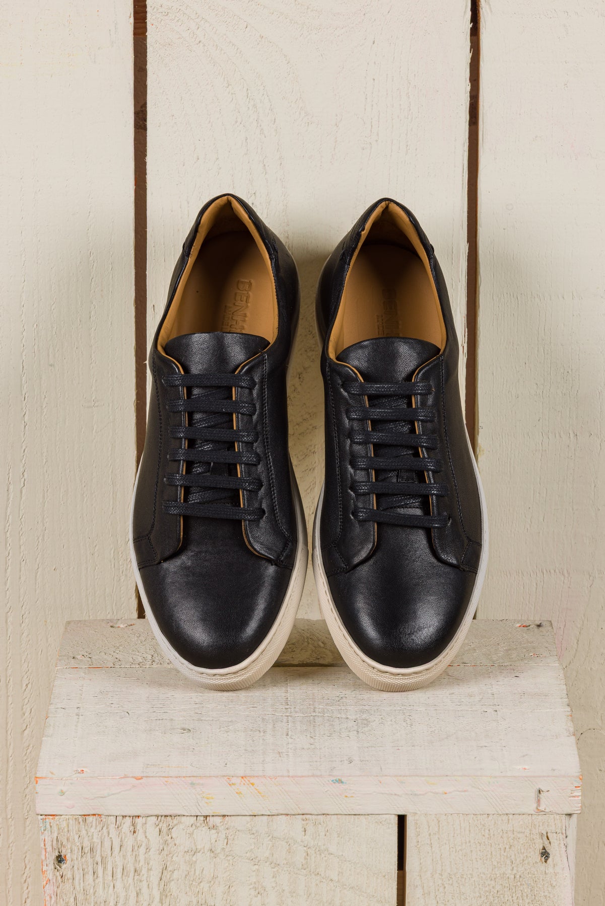 Benheart Leclerc men’s black leather low-top sneakers, top view.