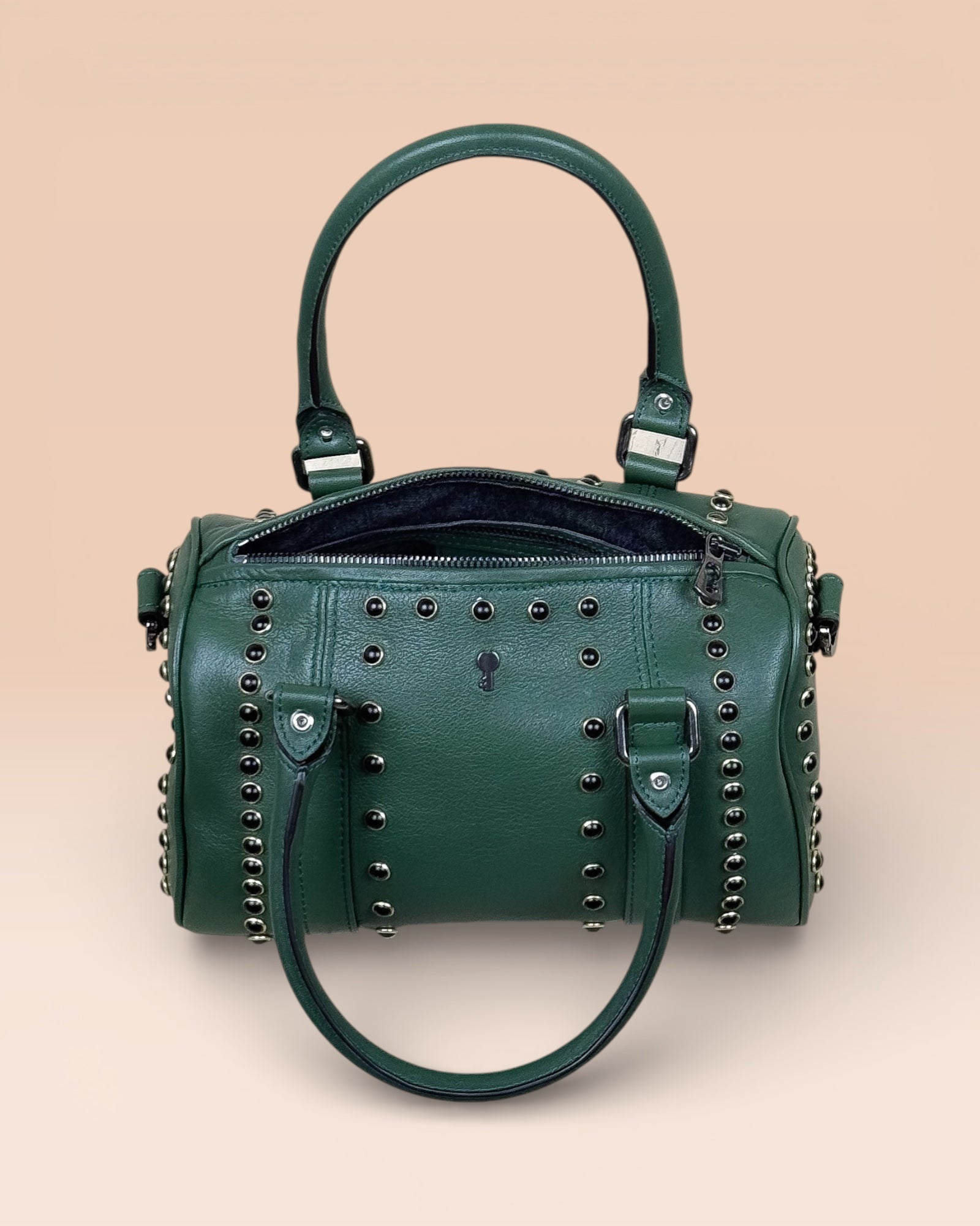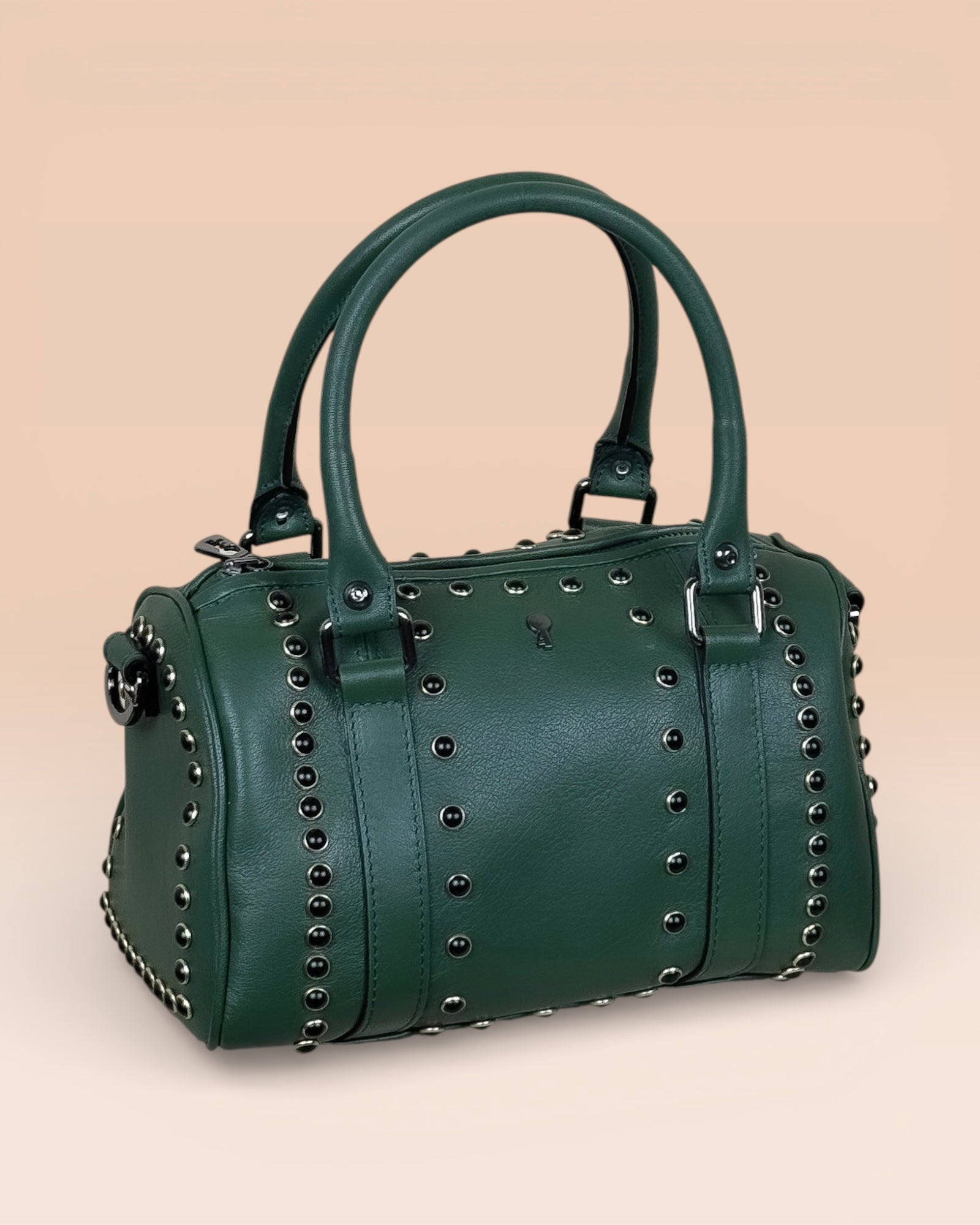 Discover the Dom Borchiata, the exclusive handcrafted bowling bag that combines luxury and practicality. Made from incredibly soft lambskin, it offers an unparalleled tactile sensation. Designed as an elegant women's bag for everyday life, it balances timeless sophistication with a subtle, personal charm, making it the perfect accessory for the woman who appreciates discreet elegance and superior quality.
