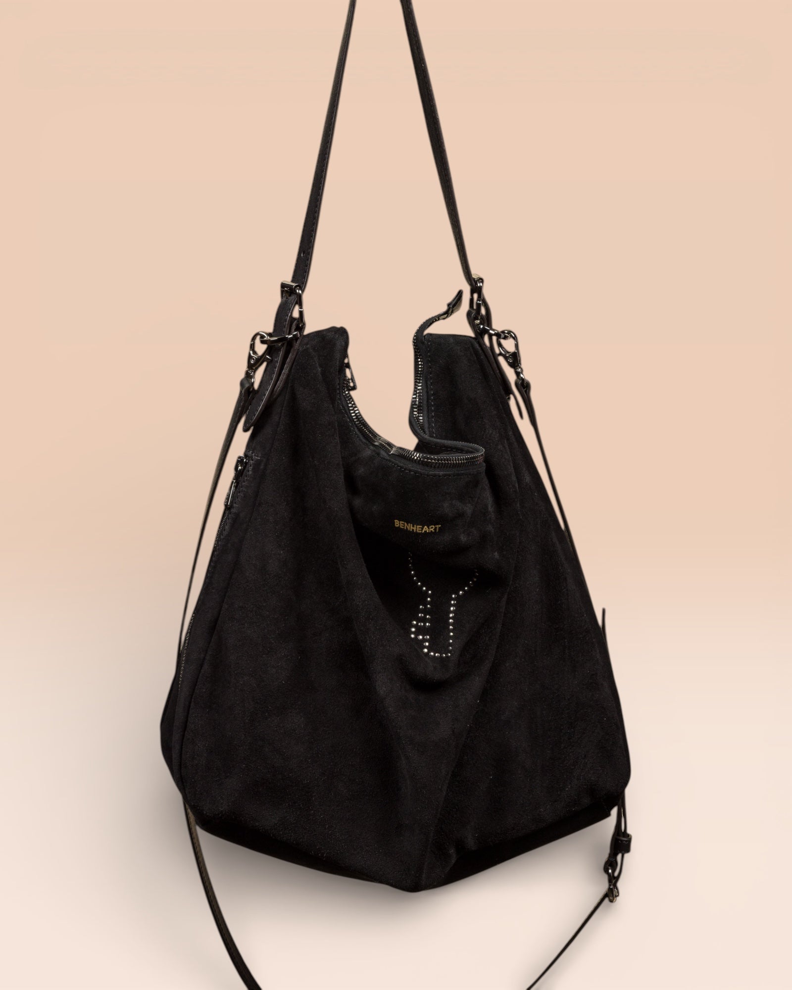Discover the Venice Suede Logo bag, a refined expression of timeless elegance where soft suede meets Benheart's iconic design. Handcrafted from the finest garment-dyed lamb suede leather, this luxury bag combines Florentine artisanal tradition with a bold contemporary touch, perfect for the woman who seeks style and quality.