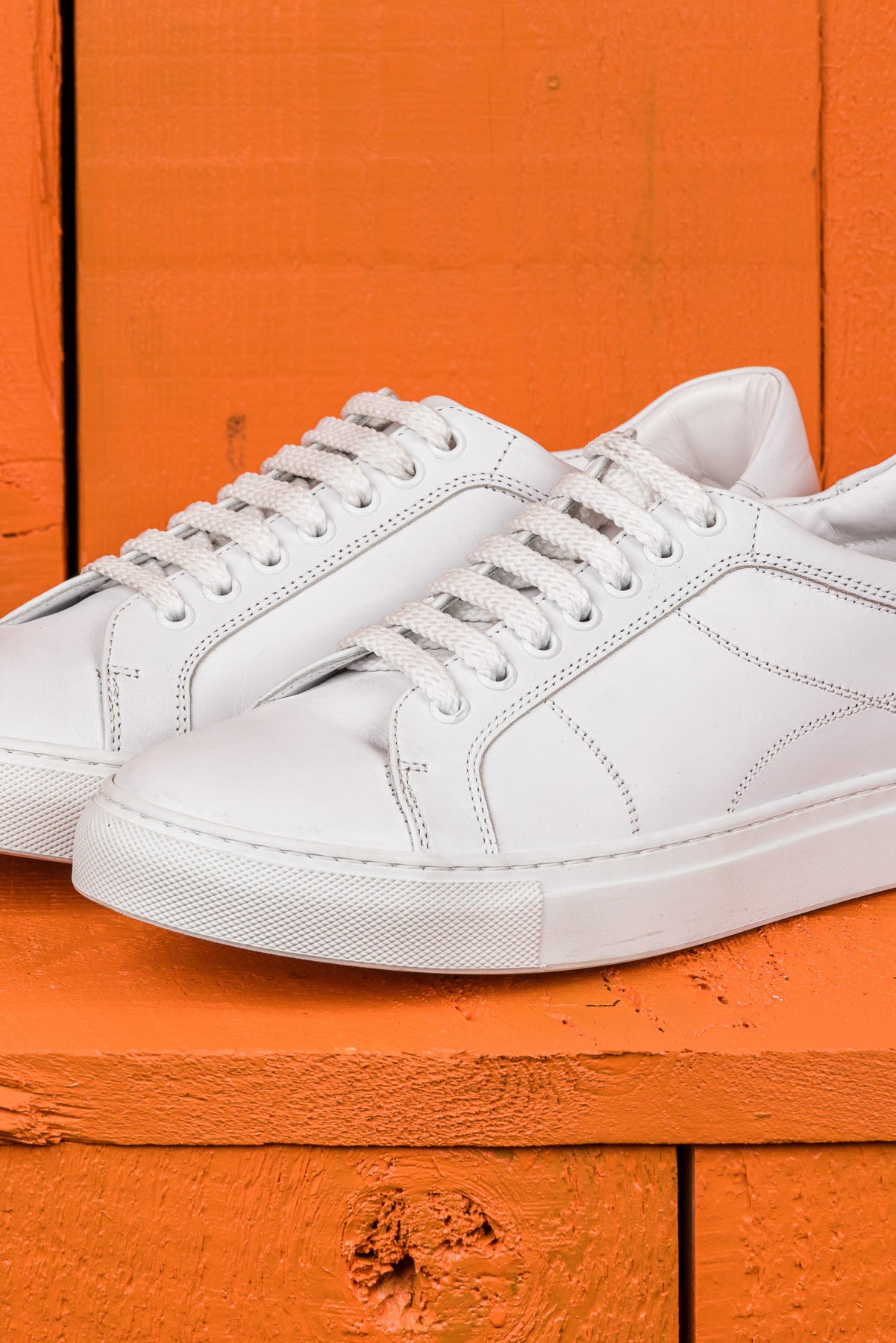 Top view of Venus unisex white leather sneakers, handcrafted in Florence.
