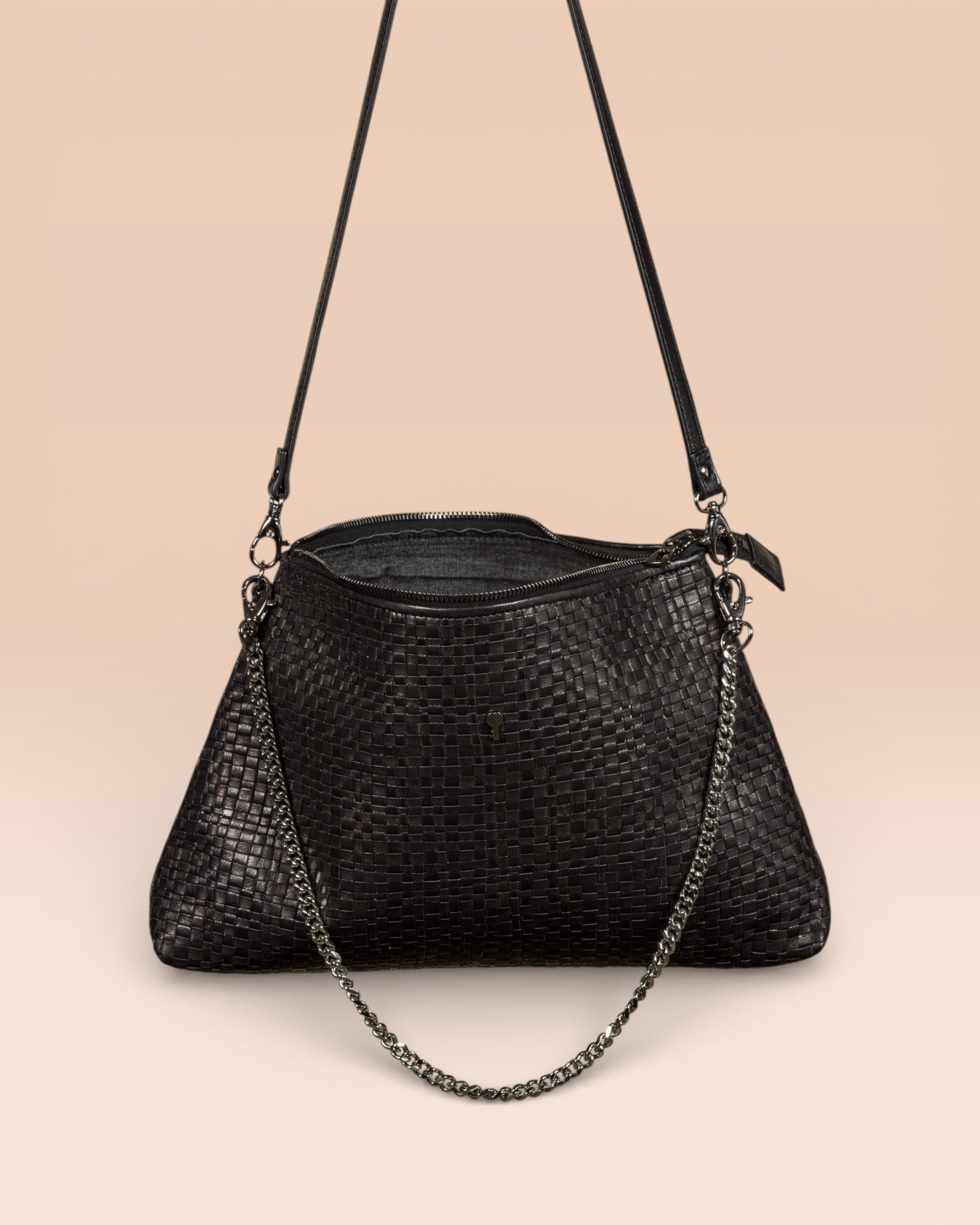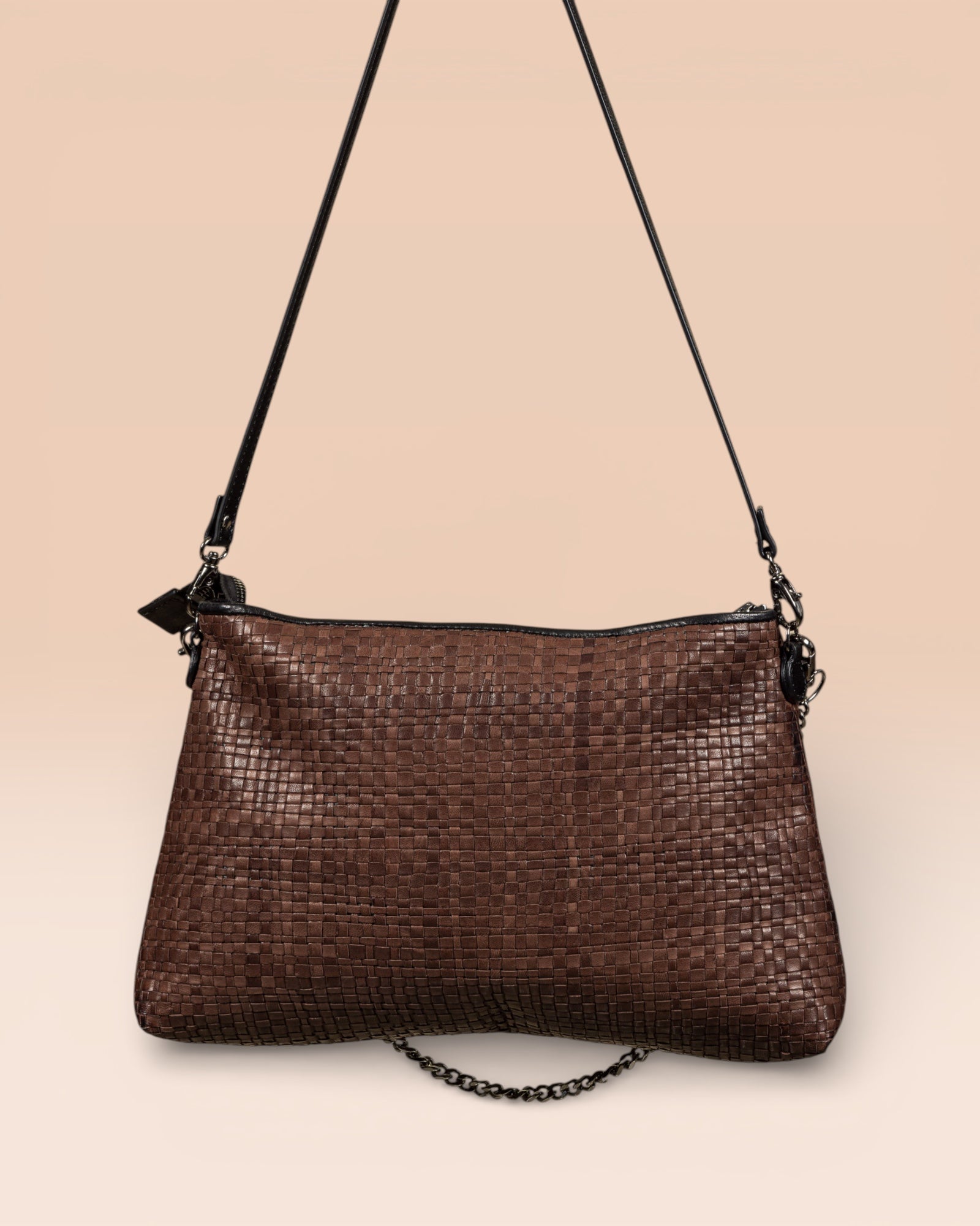 • Versatilità: Manico a catena raffinato e tracolla in pelle regolabile e rimovibile per uno styling versatile. Ampio scomparto principale con chiusura a zip per mantenere gli essenziali in ordine e al sicuro.