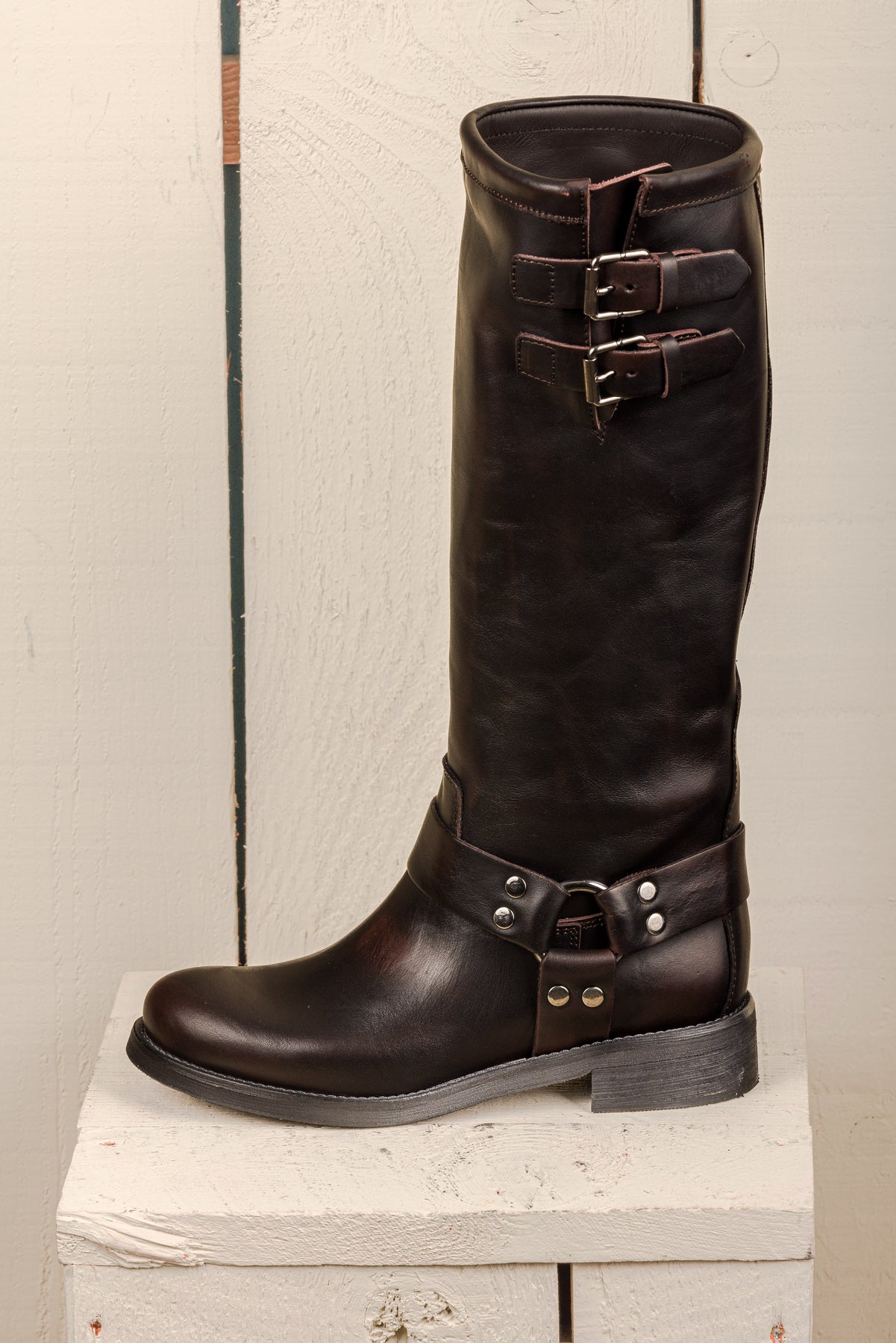 Introducing the 994 Maria boots. Crafted with genuine leather and adorned with buckles, these boots are perfect for adding a touch of edginess to any outfit. Experience comfort and style in one with these black leather boots. Stand out from the crowd with the 994 Maria boots!